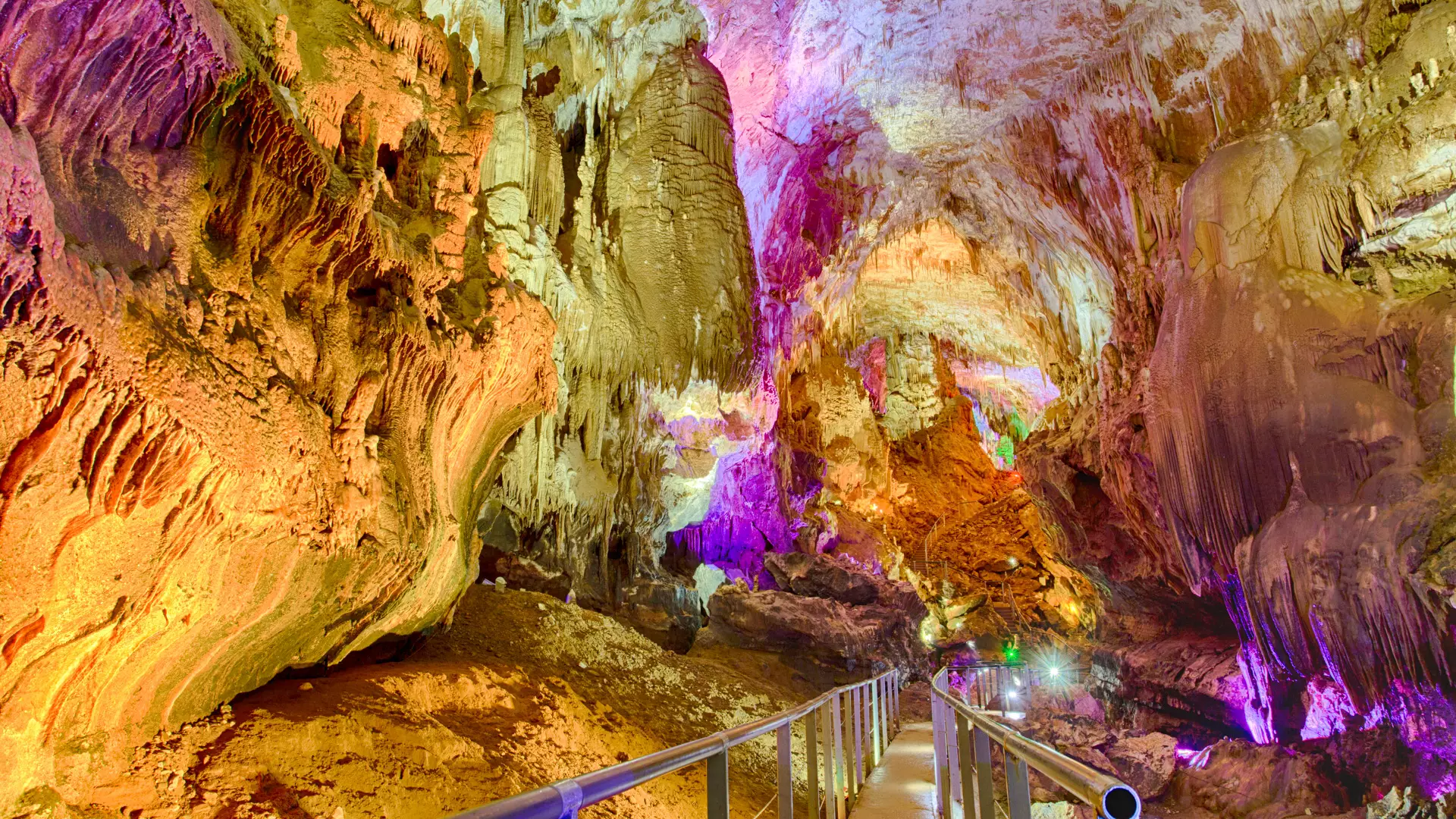 Esperienza: cammina attraverso 1,4 km di sale spettacolarmente illuminate piene di stalattiti.