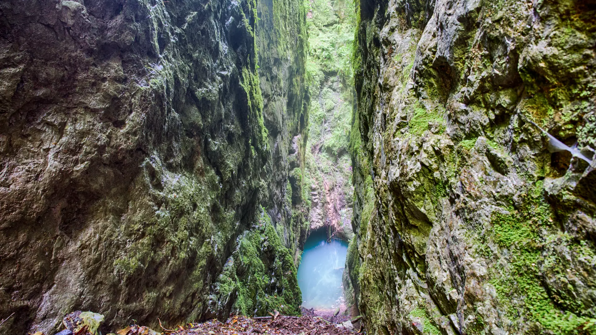 Un vero tesoro nascosto per coloro che vogliono uscire dai sentieri battuti. Questo lago " spaccato" si trova all'interno di una profonda fessura simile a un canyon. L'acqua è incredibilmente limpida e ferma e riflette perfettamente le scogliere circostanti.